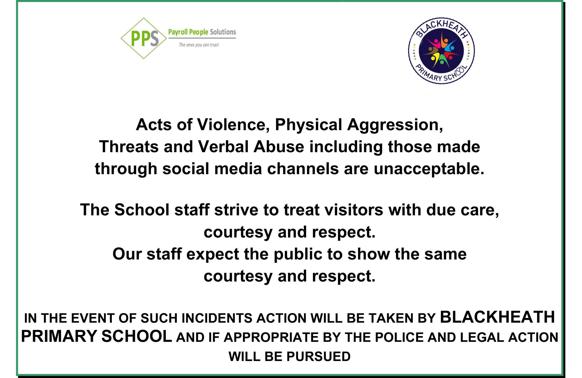 At Blackheath Primary School, we are committed to providing a safe, respectful, and inclusive environment for all members of our school community — including pupils, staff, parents, carers, and visitors.